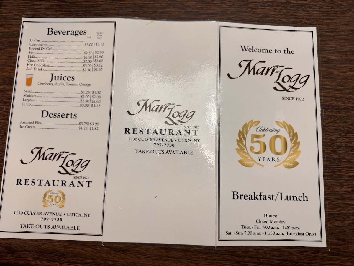 Marr-Logg House Menu